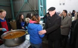 Ekip festivalde sucuklu ekmeğin tadına bakıp hatıra fotoğrafı çekindi.