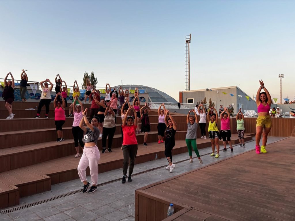 Su Sporları Merkezi’nde bir araya gelen kadınlar, yaz boyunca öğrendikleri hareketlerle açık havada dans etmenin keyfini çıkardılar.