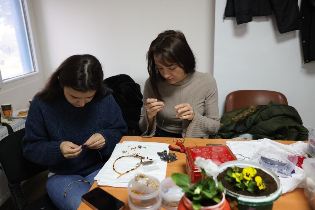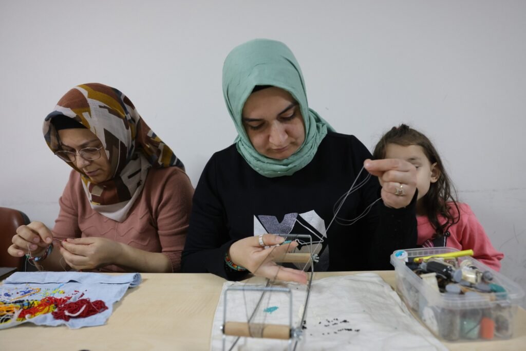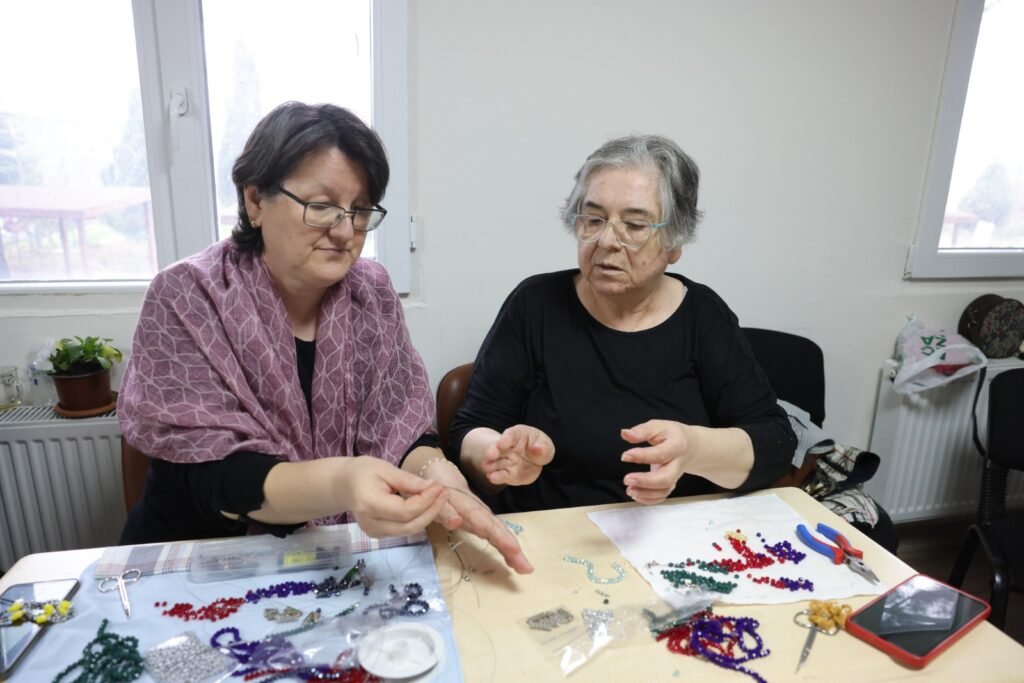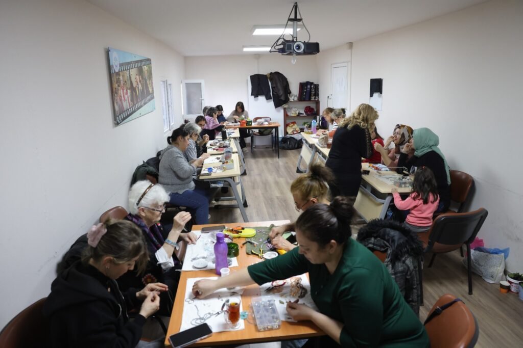 Etkinlikte en dikkat çekici unsur ise “atık” olarak görülen malzemelerin yeniden hayat bulduğu anlar oldu. Evlerde artık kullanılmayan çaydanlıklar, tencereler, yoğurt ve peynir kapları, kursiyerlerin yaratıcı dokunuşlarıyla rengârenk saksılara dönüştü. Belediyenin Park ve Bahçeler Müdürlüğü tarafından seralarda yetiştirilen çiçeklerle buluşan bu malzemeler, hem estetik hem de çevre dostu bir dönüşümün örneğini sundu. Kadın kursiyerlerin yoğun ilgi gösterdiği etkinlikte, geri dönüşüm yalnızca teoride değil, uygulamada da deneyimlendi. Katılımcılar bir yandan atıklarını değerlendirmenin yollarını öğrenirken, diğer yandan doğaya katkı sunmanın somut mutluluğunu yaşadı. Yapılan çiçek ekimleriyle karbon ayak izinin azaltılmasına da dikkat çekildi.