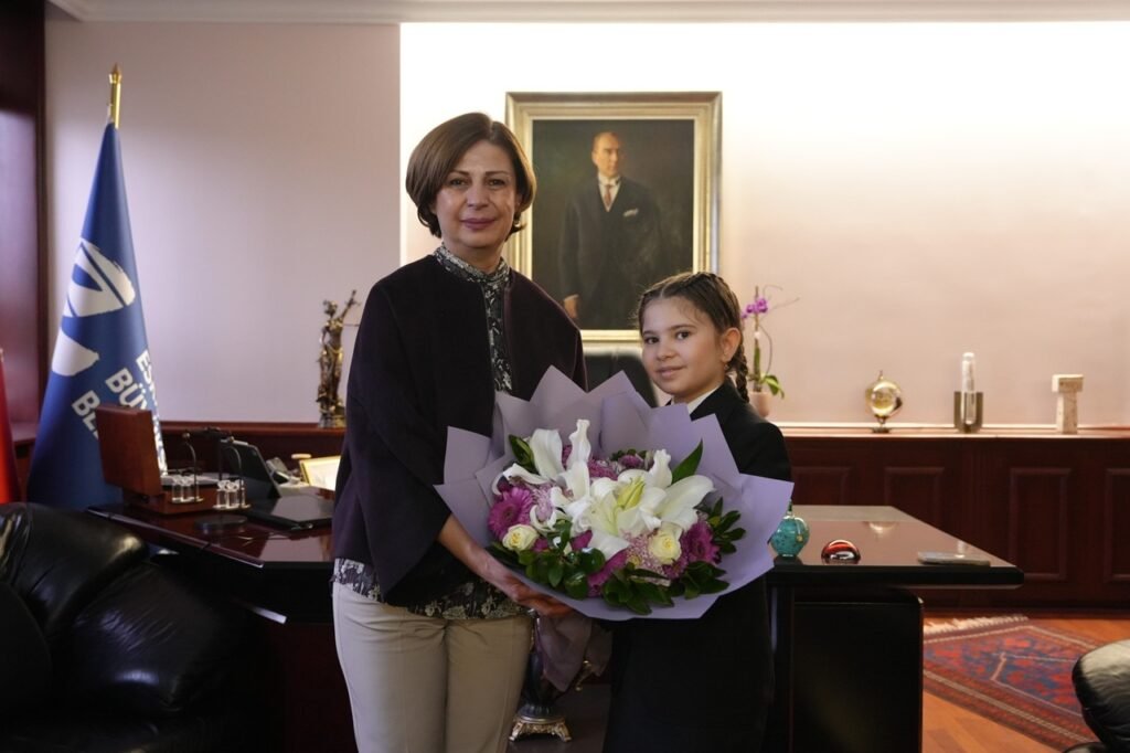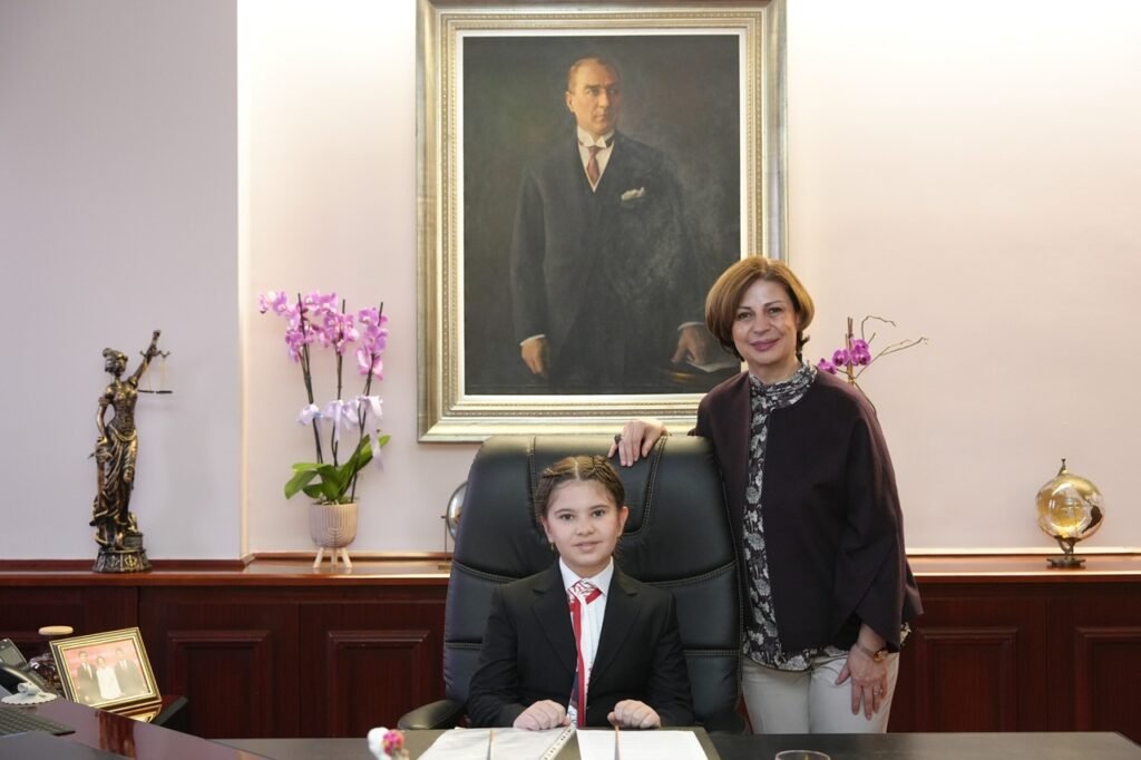 Yarınların teminatı çocuklara güzel bir gelecek bırakmak için çalıştıklarını söyleyen Başkan Ayşe Ünlüce de, *“Ece Başkanım, seni, değerli müdür yardımcılarımızı ve öğretmenlerimizi burada ağırlamaktan büyük mutluluk duyuyoruz. 23 Nisan’ın heyecanını hep birlikte yaşıyoruz. Dünyada çocuklara armağan edilen tek bayram olan 23 Nisan’ı, Mustafa Kemal Atatürk’ün hediyesi olarak büyük bir gururla kutluyoruz. Senin gibi bilinçli ve geleceğe umutla bakan bir öğrenciyi bugün bu koltukta görmek bizlere umut verdi. Başta öğretmenlerimiz olmak üzere emeği geçen herkesi tebrik ediyorum. Ülkü İlkokulu’nu temsilen burada olman da ayrıca anlamlı; ben de o okulun bir mezunuyum. Verdiğin talimatları dikkatle dinledik, hepsi çok değerli. Özellikle su tasarrufu konusundaki hassasiyetin bizim için çok önemli. Tekrar hoş geldin diyor, seni kutluyorum.”* dedi.