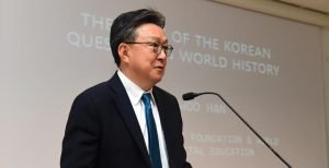 “Kore Savaşı’nda özellikle Türk askerlerinin göstermiş olduğu çaba için minnettarım. Bugün sizinle konuşmak istediğim ana konu Kore Savaşı. 2018’de Türkiye’ye geldiğimde İstanbul, İzmir ve Ankara’da Kore Savaşı’ndaki gazilerle görüşmeler yaptım. Vakıf olarak 22 farklı ülkenin her birinden Kore Savaşı hakkında görüşmeler yapan tek vakıf biziz. Kore Savaşı’nın ana nedeni 1948 yılında Kore Yarımadası’nın bölünmesiydi. 1950 yılında da nükleer silah üretimi yapan Kuzey Kore’nin Güney Kore’ye saldırması ile savaş başladı. ABD-Çin ekseninde şekillenen savaşa daha sonra Türkiye ve İngiltere’de dahil oldu. Kore Savaşı’nda Türk askerinin göstermiş olduğu mücadele Kore tarihinde hep konuşulmaktadır. Aslında Soğuk Savaşın ilk çatışması Kore Savaşı’dır. Türkiye’deki tarih kitaplarında bu savaşa çok yer verilmiyor. Kore Savaşı’nda Kore’ye en büyük destek sağlayan Türkiye’deki gençlerin bu tarihi savaşı daha yakın incelemesi gerekiyor. ABD ve Çin uluslararası boyutta gücünü korumak için bu savaşa dahil olmuş savaş sonrası Kore topraklarının nasıl bölüşüleceği ABD ve İngiltere başkanlarınca görüşülmüştür. Kore Savaşı’nda 3 milyona yakın insan öldü ve bu savaşın etkisi hala daha sürmekte.”
