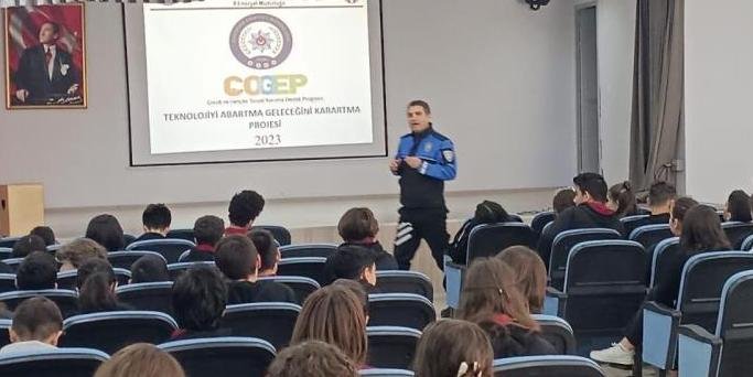 oplum Destekli Polislik Şube Müdürlüğü tarafından 2023 yılı içerisinde ‘Teknolojiyi Abartma Geleceğini Karartma’ isimli ÇOGEP projesi uygulamaya konuldu. Bu proje çerçevesinde toplum için büyük önem arz eden teknoloji bağımlılığından korunma, güvenli internet kullanımı ve dijital bağımlılık konularında bilinçli nesiller yetiştirilmesi amacıyla çocuklara ve gençlere yönelik eğitimler düzenleniyor. Bugün de Eskişehir’deki bir lisenin konferans salonunda 170 öğrenci ve 20 idareciyle bilgilendirme faaliyeti gerçekleştirildi. Yapılan faaliyete katılan öğrencilere çeşitli hediyeler verilirken, çalışmaların aralıksız devam edeceği aktarıldı.
